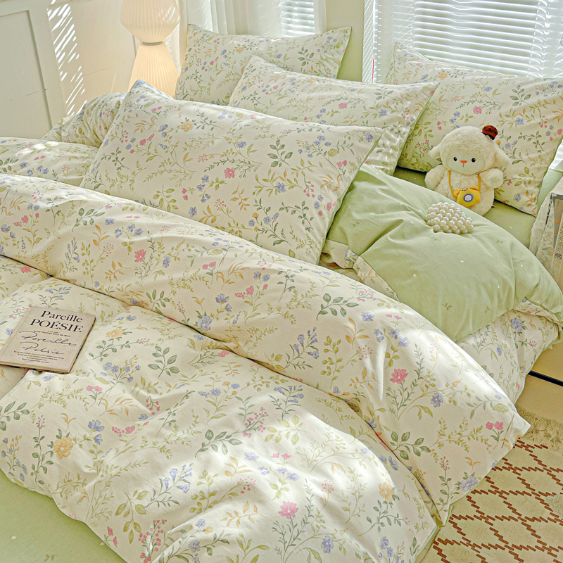 套件组成 有三件套、四件套。四件套分(床单式、床笠式)