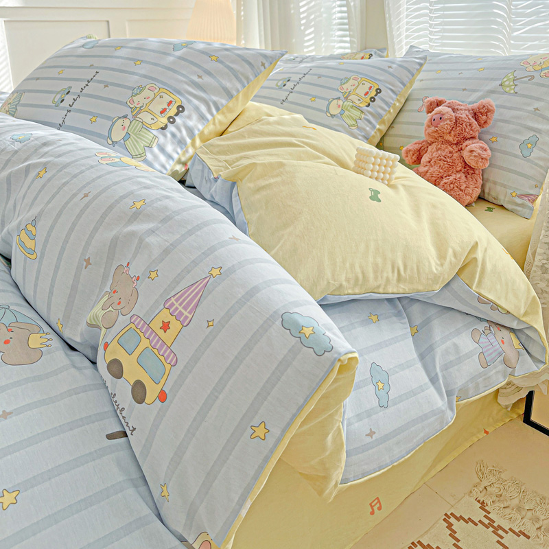 套件组成 有三件套、四件套。四件套分(床单式、床笠式)