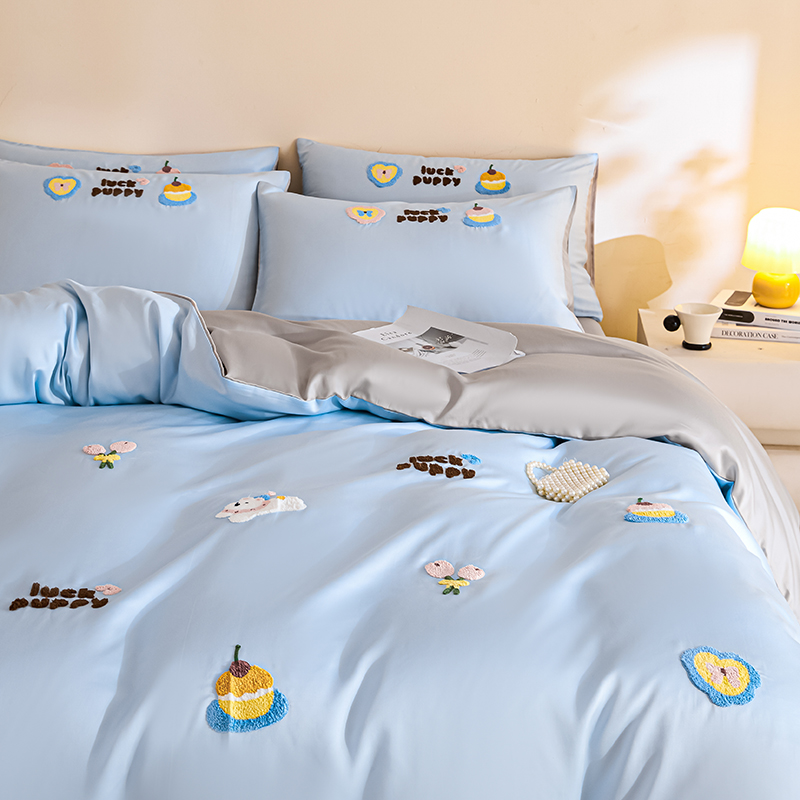 套件组成 有三件套、四件套。四件套分(床单式、床笠式)