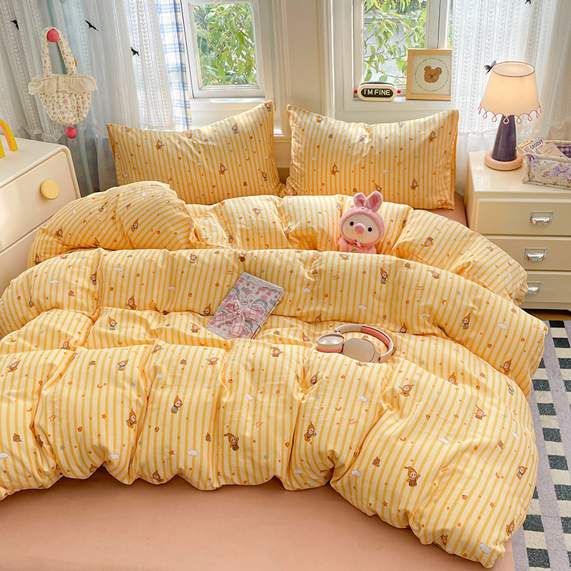 套件组成 有三件套、四件套。四件套分(床单式、床笠式)
